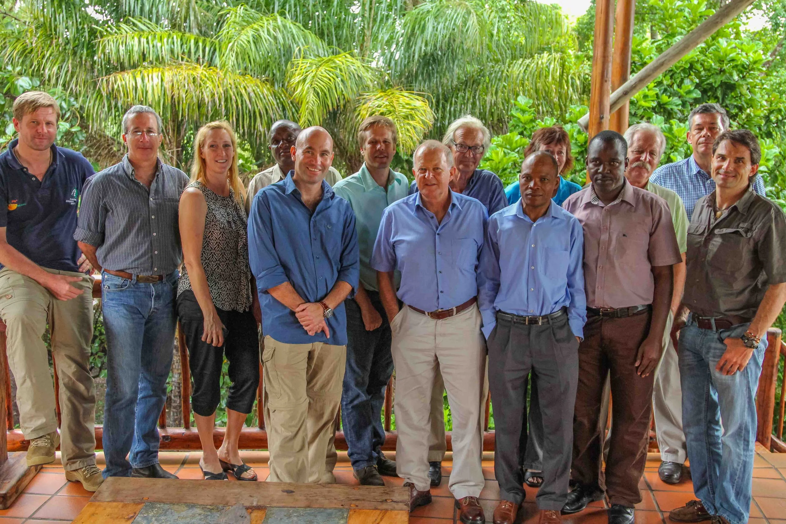 Cohort of scientists and aerial wildlife surveyors in Kasane, Botswana, January 2014